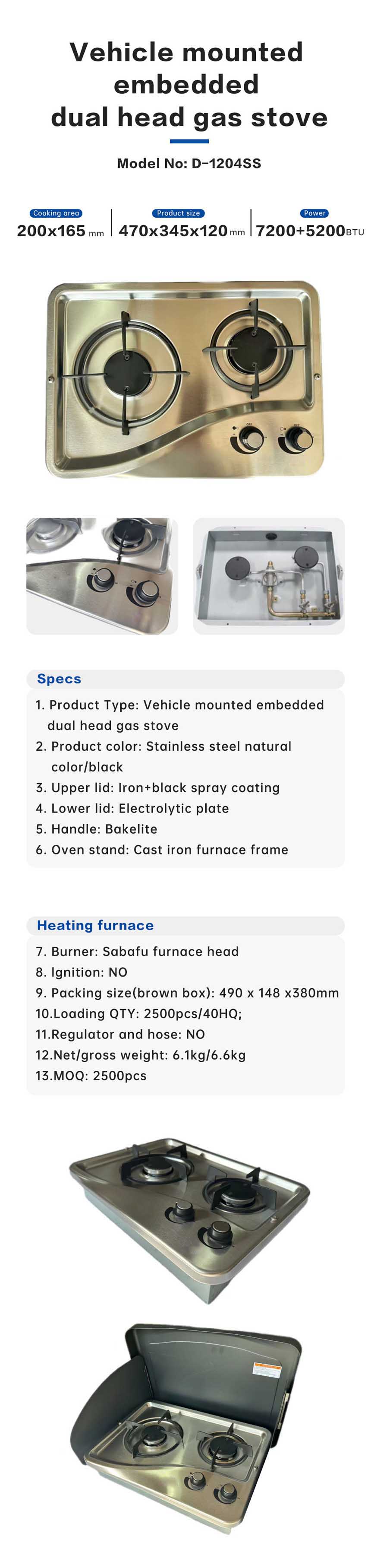 Vehicle mounted embedded dual head gas stove